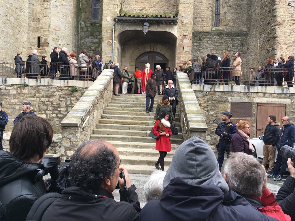 #Trèbes La cérémonie s’achève. Mgr Planet salue les fidèles sur le parvis de l’église #AUDE