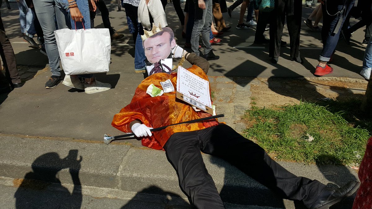 16h34 : Une grande majorité des manifestants participant à la Fête à Macron demeurent dans un esprit bon enfant, tweete notre journaliste dans le cortège.